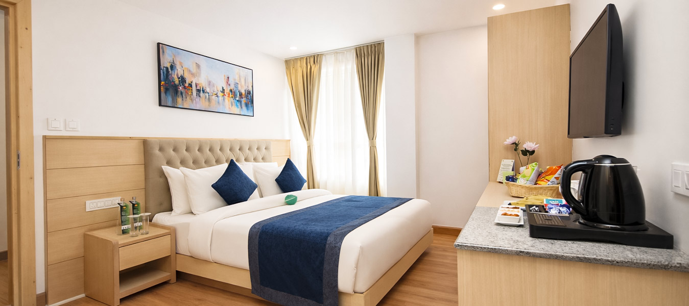 Ideal for solo travelers or couples, these cozy rooms offer a queen-sized bed, functional workspaces, and all the comforts of home.