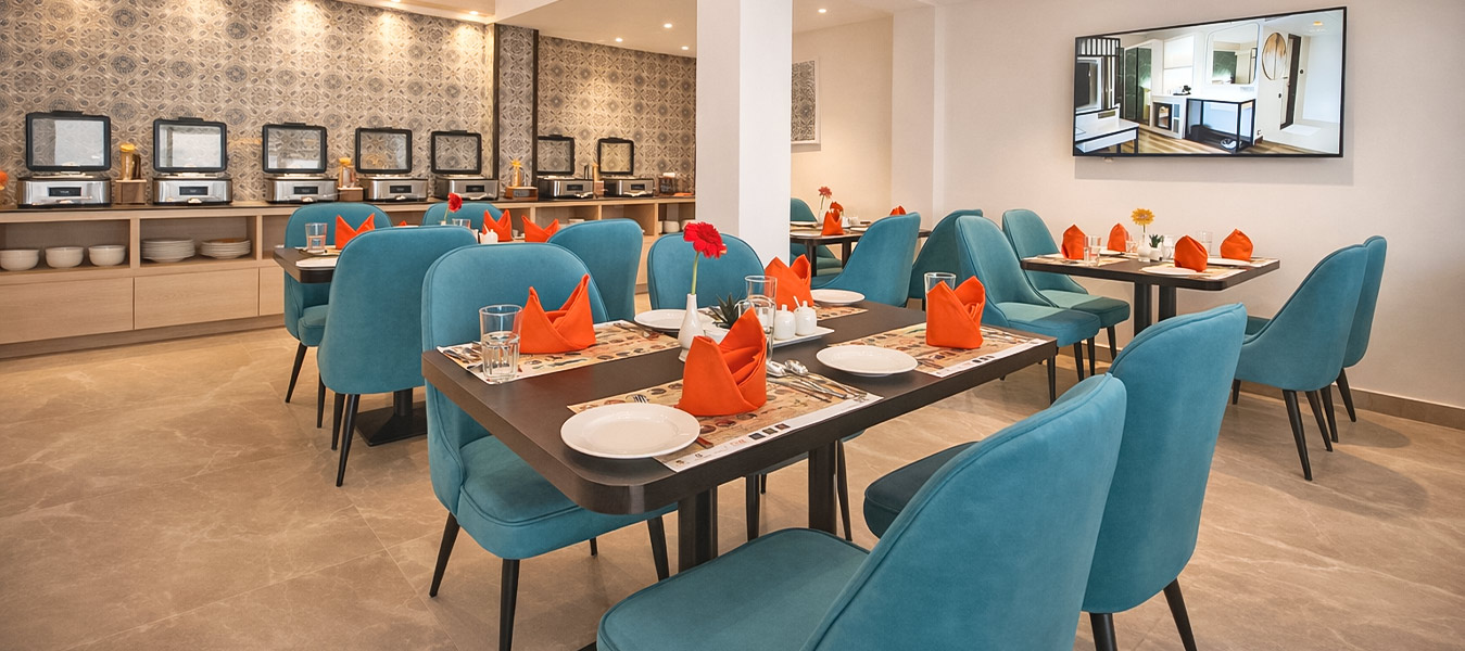 A Culinary Experience Like No Other Indulge in a rich array of culinary delights at Cinnamon, our in-house multi-cuisine restaurant. From savory Indian tandoori dishes to comforting Continental options, our menu is designed to cater to every taste. Whether you're in the mood for a hearty breakfast or a special dinner, we have something for everyone. Our buffet breakfast offers a range of fresh options, while our à la carte menu is perfect for those seeking variety and quality. Enjoy your meal in an inviting, relaxed atmosphere with friendly service.