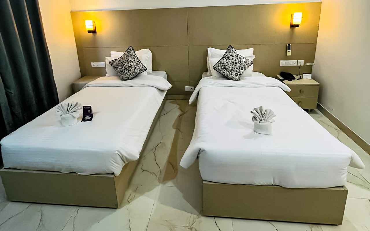 Immerse yourself in the ample comfort of our Super Deluxe Rooms, adorned with chic interiors and warm furnishings. Perfect for both leisure and corporate guests, these accommodations provide a seamless blend of comfort and functionality, enhancing your stay.
