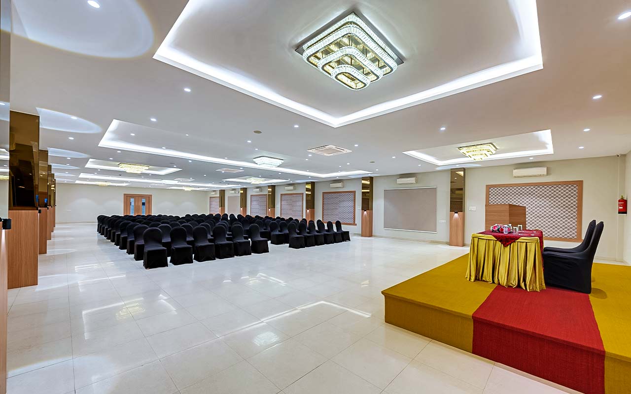 Host your dream celebrations at our hotel's premier banquet hall in Mirzapur. We present three exquisite venues: Summit - -I, Summit - -II, and GEMS Lawn, perfect for weddings and birthday parties. Summit - --I, covering 4500 sq. ft., offers a grand and sophisticated space for your regal events, while Summit - --II, with 2000 sq. ft., is ideal for a variety of gatherings. GEMS Lawn provides a charming setting with a delightful ambience for those seeking an outdoor celebration. Our attentive staff is always ready to assist, ensuring your celebrations are spectacular.